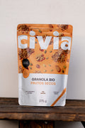 Copos de avena integral sin gluten* (54,2%), dátil*, crema de sésamo*, aceite de oliva virgen extra*, fibra de tapioca*, semillas de calabaza* (4,3%), almendras* (3,5%), avellanas* (3,5%), nueces* (3,5%), semillas de girasol* (1,7%), canela*.